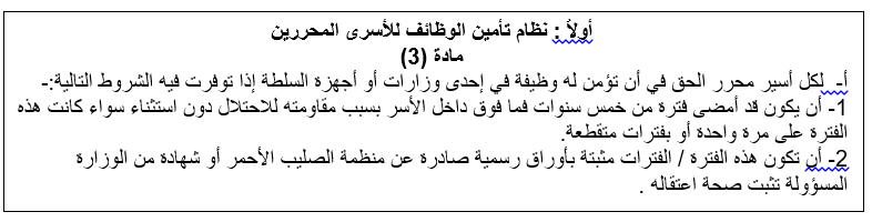 Clause 3. Every released prisoner has a right to be guaranteed a job in one of the ministries or the PA apparatus, if the following conditions are met: