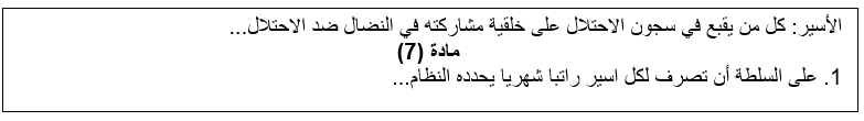 The prisoners’ law to which Fares was referring is PA “Government Decision Number 23 of 2010, Regarding the Regulation of Payment of the Monthly Salary to the Prisoner.” The law specifies:
