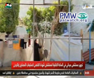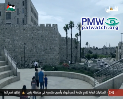 News flash on screen: “The [PA] General Intelligence [Service] gives a grant to the families of the Martyrs and the prisoners from its members in the Jenin district.”