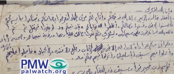 The full text of the Hamas commander’s hand written note: