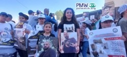 The picture shows children holding posters featuring armed Islamic Jihad terrorists who were killed.