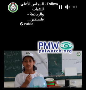 The video shows children participating in the PLO Supreme Council for Youth and Sports summer camps speaking to the camera.