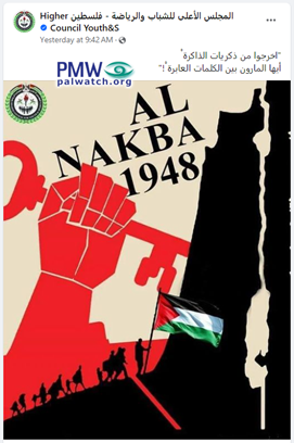 The Nakba - i.e., “the catastrophe,” Palestinian term for the establishment of the State of Israel