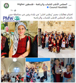 Posted text: “The conclusion of activities of the ‘My Homeland is the Best’ [summer] camp in Burqin village in the Jenin district, supervised by the [PLO] Supreme Council of Youth and Sports.”