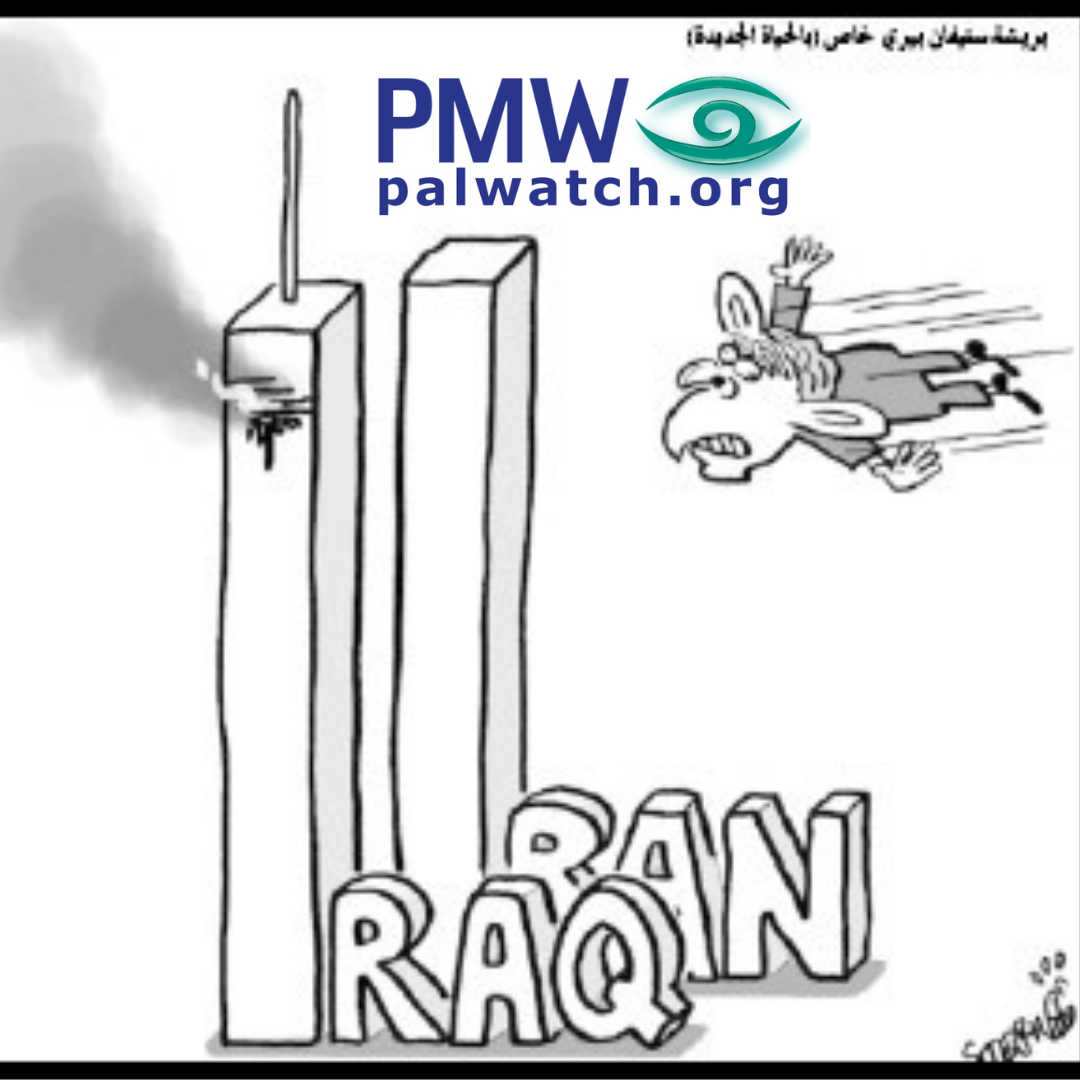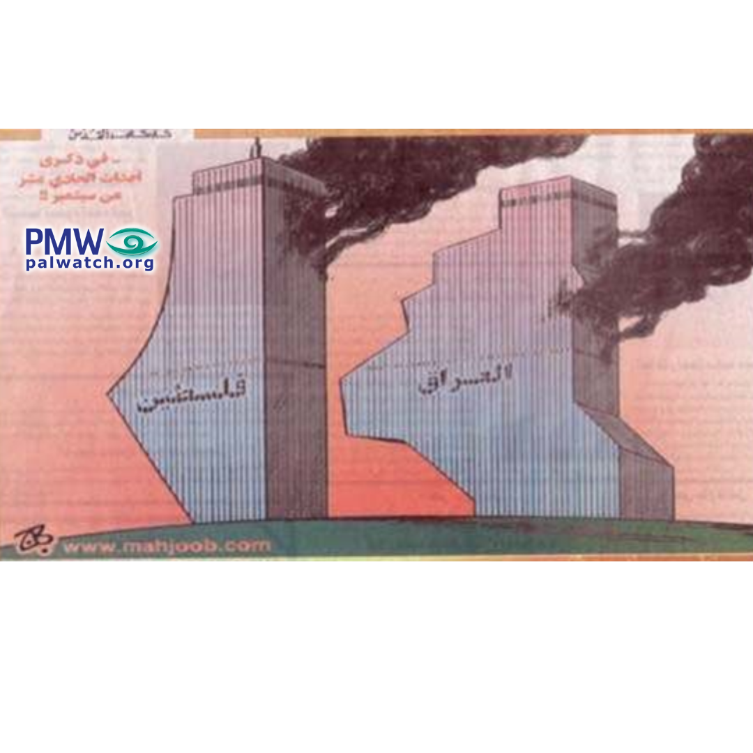 Another cartoon shows the PA’s view that the real victims of 9/11 were Iraq and the Palestinians: