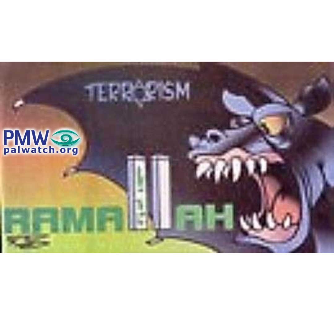 The two letters “L” of Ramallah take the form of the Twin Towers and the “o” in TERRORISM takes the form of a Jewish star.