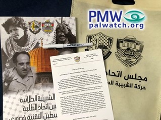 This terror role-modeling does not take place only in elementary school, rather it continues at the university level as well. Fatah's Shabiba Student Movement and Student Union Council at Palestine Technical University – Kadoorie welcomed new students with free notebooks and stationery bearing photos of terrorists Dalal Mughrabi, Salah Khalaf, and Yasser Arafat. Mughrabi led the murder of 37 people, 12 of them children (upper left); Khalaf, or "Abu Iyad," was the head of the Black September terror organization (bottom left); Arafat was the chairman of the PLO and PA (upper right):
