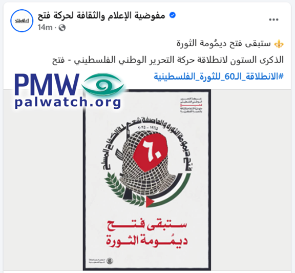 On the 60th anniversary of its Intilaqa (i.e., the anniversary of "the Launch" of Fatah, counted from its first terror attack against Israel), the hope and the promise are renewed."