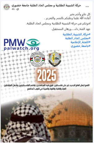 [The Fatah Shabiba Student Movement and Student Union Council at Palestine Technical University – Kadoorie, Facebook page, Jan. 1, 2025]