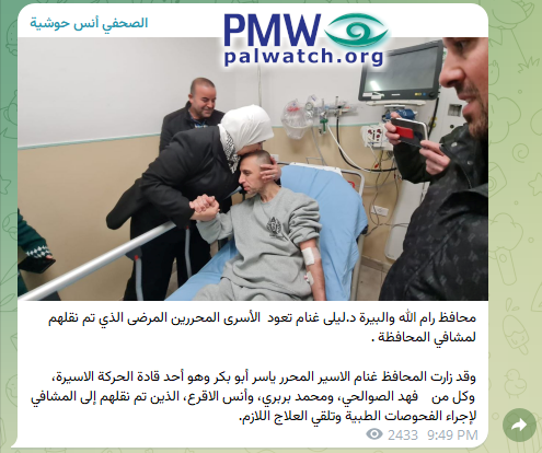 The other terrorists visited by the PA governor were Fahad Sawalha, Muhammad Barbari, and Anas Al-Aqra.