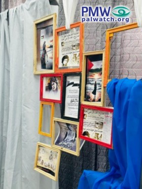 A display at the activity had many images representing terrorist murderer Dalal Mughrabi. Text on the image in the middle at the bottom says: