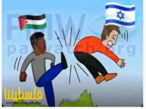 A website of the PA's ruling Fatah party put this PA hate message into a cartoon, headlined "Get out of my country," which depicts a dark-skinned Palestinian kicking the buttocks of a light-skinned Israeli and causing him to go flying—apparently, all the way to Poland.