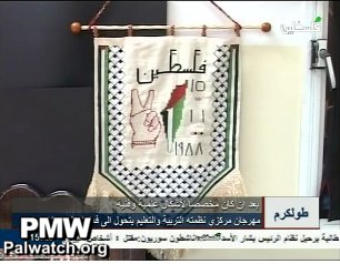 This political map erasing Israel was broadcast during a PA TV report on an event for youth sponsored by the Palestinian Authority Ministry of Education. Above the map is the word "Palestine" and to the right of the map is the date "Nov. 15, 1988," the date that Yasser Arafat declared Palestinian statehood. According to this PA map, PA statehood started in 1988 and the State of "Palestine" replaces Israel.