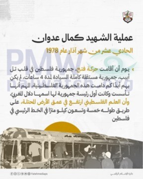 The PA and Fatah refer to the hours during which the terrorists took control of the Israeli bus and held its passengers captive as "the establishment of the Palestinian republic." The Fatah post calls murderer Mughrabi "the first president of the republic":