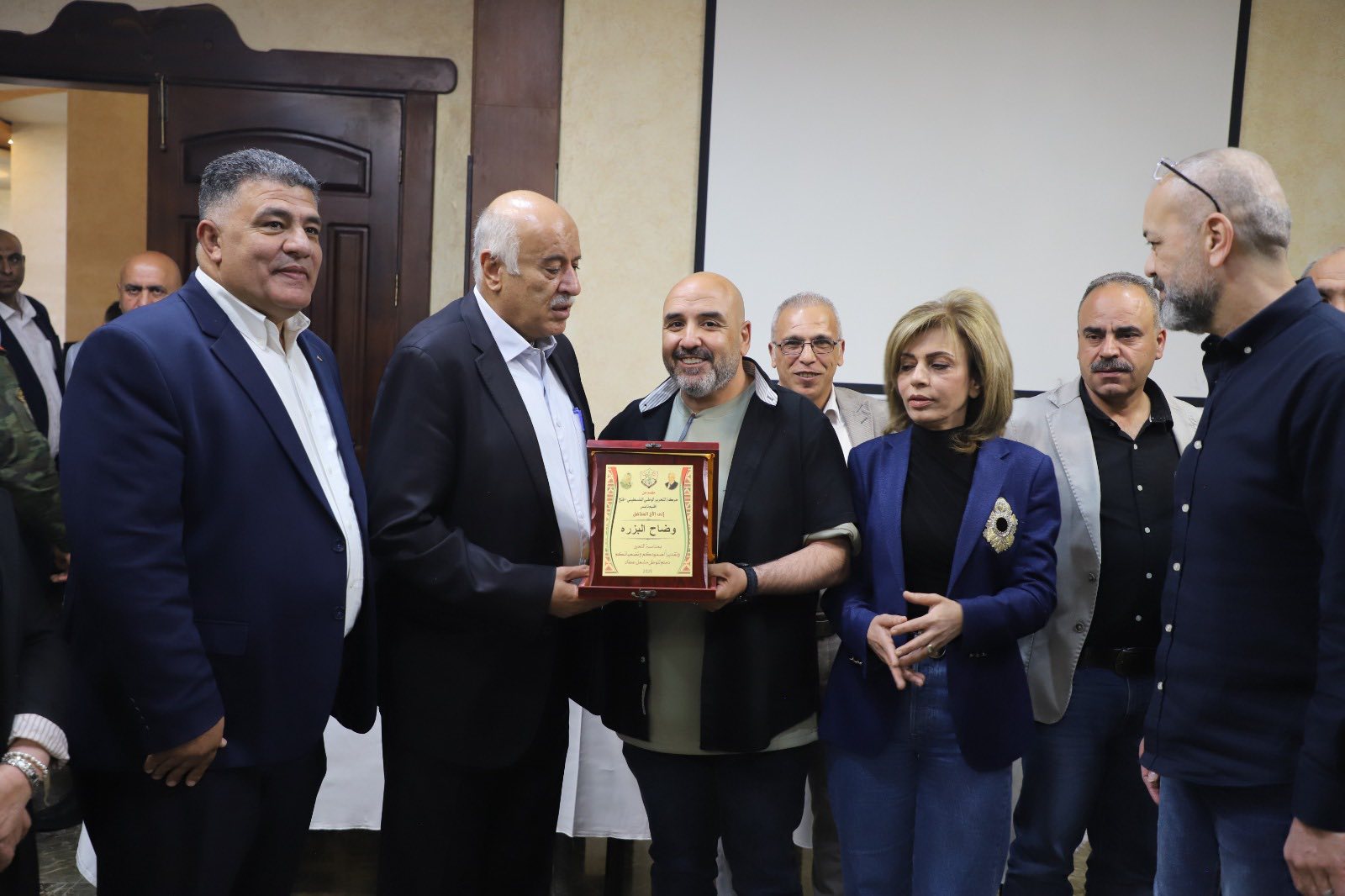 The ceremony, described as "appreciation for the symbols of the Palestinian people's struggle," featured Rajoub personally presenting honorary plaques to released terrorist prisoners Yasser Abu Bakr and Nasser Al-Shawish, each of whom was convicted for murdering three people.