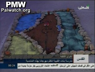 Reporting on a rally for Nakba Day ("Catastrophe Day" - the day Palestinian Authority mourns Israel's establishment), PA TV broadcast a map from the event that erases Israel. The rally was organized by the Al-Qabiba school, indicating that Palestinian children continue to be taught to envision a world without Israel