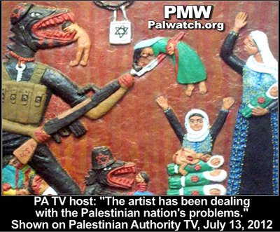 Recently, PMW documented another example of PA demonization: PA TV broadcast a painting presenting Israel as an ogre that impales and eats Palestinian children in Gaza.