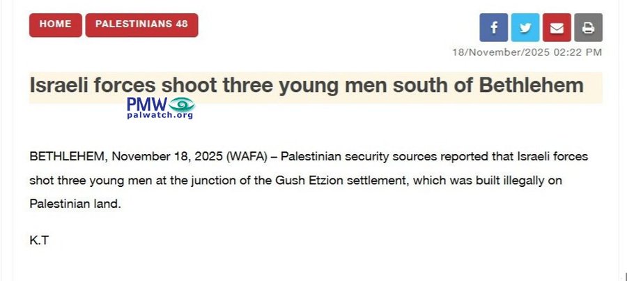 "Breaking: The occupation opens fire on 3 young men south of Bethlehem"