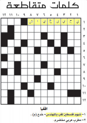 | Clue: "Occupied Palestinian mountains - 1948" Solution: "Carmel" (Haifa) [Al-Hayat Al-Jadida, Aug. 4, 2009] | Clue: "Palestinian city" Solution: "Acre" [Al-Hayat Al-Jadida, June 27, 2010] |