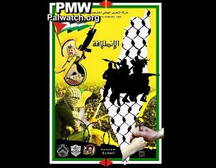 Picture posted on Fatah's official Facebook page includes a rifle and a key next to a map that includes all of Israel. The pattern in the map is reminiscent of the Palestinian keffiyeh-scarf. The key symbolizes Palestinian claims of ownership to the land of the State of Israel and the claim of a “right” for residents of refugee camps to "return."