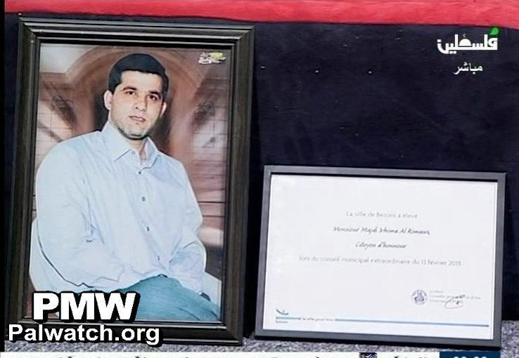 PA TV also zoomed in on the following text:Mr. Majdi Irhima Al-Rimawi