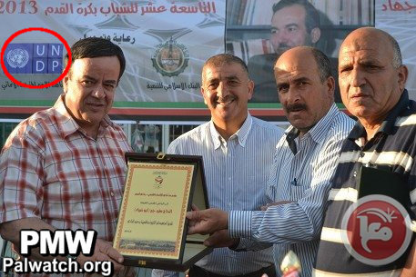 The UNDP's logo can be seen in a picture of the event in the upper left corner. Following PMW's report on the tournament, UNDP issued a statement denying that they sponsored the event. To view PMW's bulletin on UNDP's statement, click here.