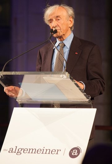 | Nobel Laureate Elie Wiesel speaking at The Algemeiner gala dinner announcing the "JEWISH 100" list. |