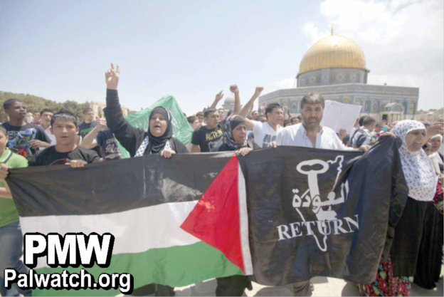 On the anniversary of the establishment of the State of Israel, referred to by the PA and Palestinians as the Nakba – “the catastrophe,” official PA TV called to “raise the Palestinian flag at the entrance to every village and town in Palestine to declare that this land is the land of Palestine,” specifying that this should be done in “Jaffa, Nazareth, Haifa, Acre, Lod, and Ramle,” – all of which are Israeli cities.