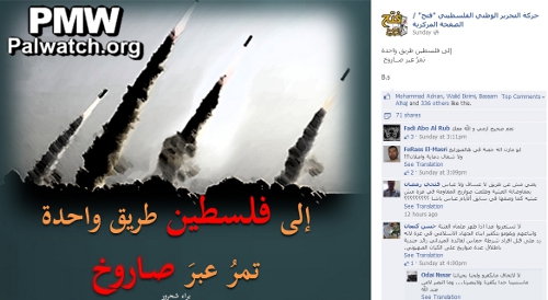 Picture on Fatah’s Facebook page shows rockets fired at Israel with caption “one way leads to Palestine”