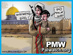 Palestinian Authority daily cartoon: Mother teaches son to use rifle to take Jerusalem
