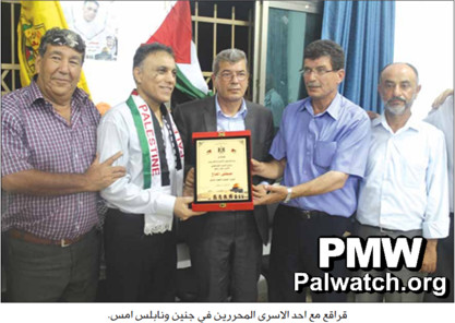 “[PA Minister of Prisoners’ Affairs Issa] Karake spoke while on a trip in the Nabus, Jenin, and Ramallah districts to greet the 26 released prisoners, during which reception ceremonies and celebrations [for the prisoners] were held. Accompanying Karake were Head of the Prisoners' Club Qadura Fares, [released] veteran prisoners and a delegation from the Ministry [of Prisoners’ Affairs] and the Prisoners’ Club, as well as Jenin District Governor Talal Dweikat, Fatah Secretary in Jenin Ata Abu Rmeileh, Member of Palestinian Parliament Jamal Hweil, Nablus District Deputy Governor Anan Al-Atireh and [released] veteran prisoners Othman Musleh, Mustafa Qar'ush, Sa’id Al-Ataba, Hassan Salameh, Muhannad Jaradat, and others... Karake and the accompanying delegation presented gifts to the released prisoners in appreciation.”