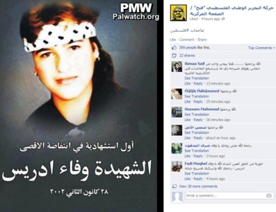 Fatah Facebook: Terrorist Wafa Idris is one of "Palestine`s illustrious women"