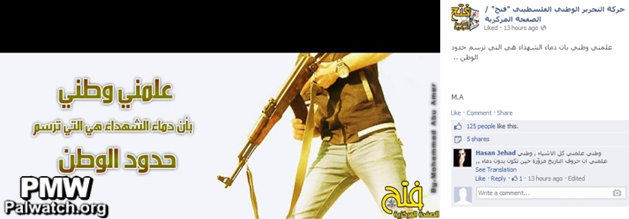 Fatah Facebook: "Blood of Martyrs draws the borders of the homeland"