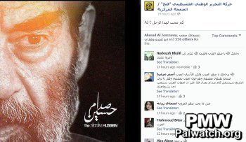 Saddam Hussein venerated on Fatah Facebook pageFatah - The Main Page, Facebook|Oct 1, 2013 Text beside the picture: “How many people love this man?”