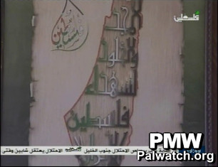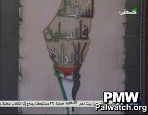 Map from the office of Bilal Aslan, Head of the Bureau for Political Guidance of Fatah in Lebanon. The map is labeled “Palestine” and at the bottom of the map, there is a Palestinian flag.
