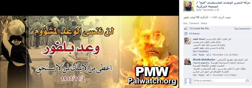 Text: “The 96th anniversary of the Balfour Promise (i.e., Declaration)”Photo: