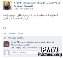 Text: “The Palestinian resistance in the Gaza Strip has launched rockets a short while ago towards our occupied lands (i.e., Israel).”