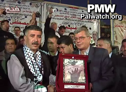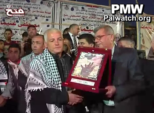 At the end of the ceremony, each of the three murderers received a plaque of honor from each of the following three official bodies: The Ministry of Prisoners' Affairs, the Hebron District and the PA Security Forces, and the Fatah branch of Northern Hebron.