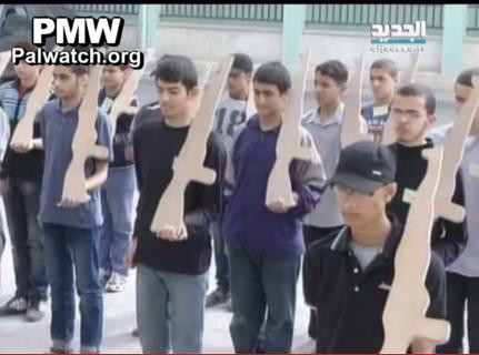 Al-Jadeed TV narrator: “Those in charge of the program deny they are attempting to turn the schools into military [schools] as circulated by Western and Israeli media. The matter is much simpler and the weapons with which the students train is merely made of wood.”