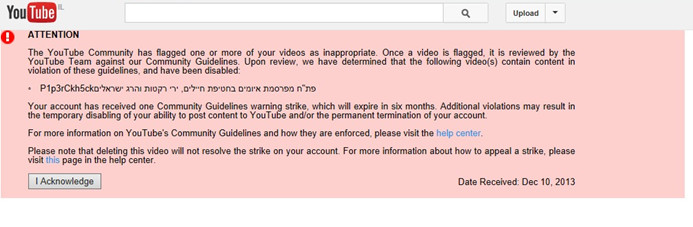 Once again, PMW has requested that YouTube return the video. PMW has no direct line of contact with YouTube administrators, other than their standard appeal option on their website. Therefore, we ask anyone who has contacts at YouTube to please help encourage YouTube to make our video accessible again.