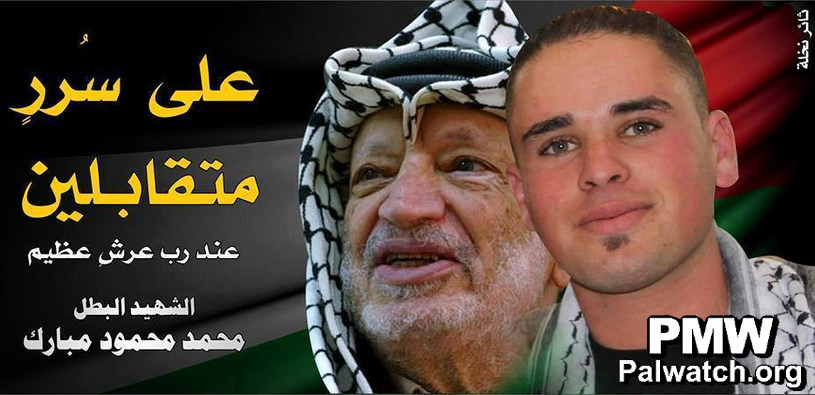 Muhammad Mahmoud Mubarak shot at an Israeli army position on Jan. 29, 2014. He was killed in the ensuing fire exchange with Israeli forces.Text: "They [Yasser Arafat and Muhammad Mubarak] preceded and we will be next.