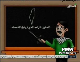 Official PA TV broadcast a cartoon that showed a math teacher pointing to a map of "Palestine" as an example of "a number that is indivisible." The map included both PA areas and all of Israel.