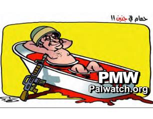 The cartoon refers to the killing of 3 Palestinians in an Israeli army operation in Jenin. Israeli forces attempted to peacefully arrest a Hamas terrorist, but when he started shooting at them, they returned fire, killing him. In the subsequent fighting, 2 more Palestinians were killed.