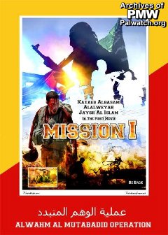 Another poster in English on the Hamas site features the names of the three groups accepting responsibility, which includes the Al-Qassam Brigades of Hamas, followed by the words “In the first movie - Mission 1 - Be Back!"
