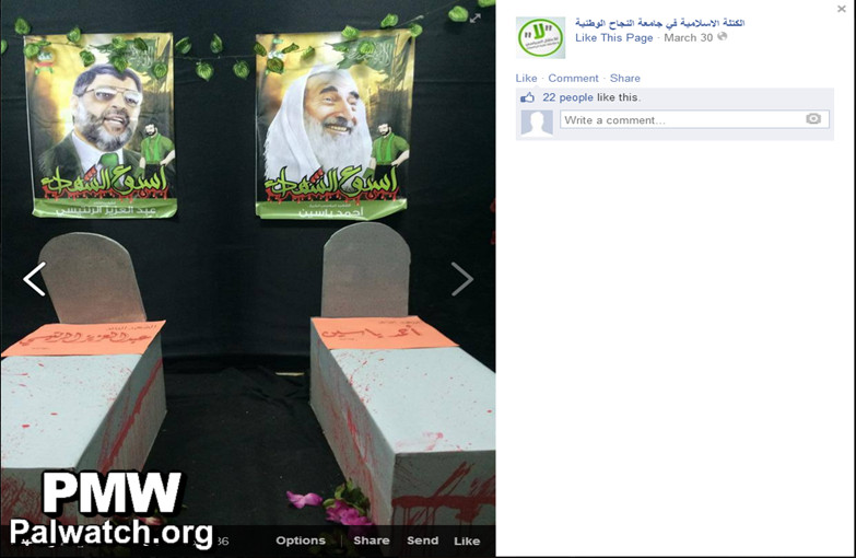 The Facebook page of the National University’s Islamic student group of An-Najah University in Nablus, a school funded by USAID, posted text and images from an exhibit they created: