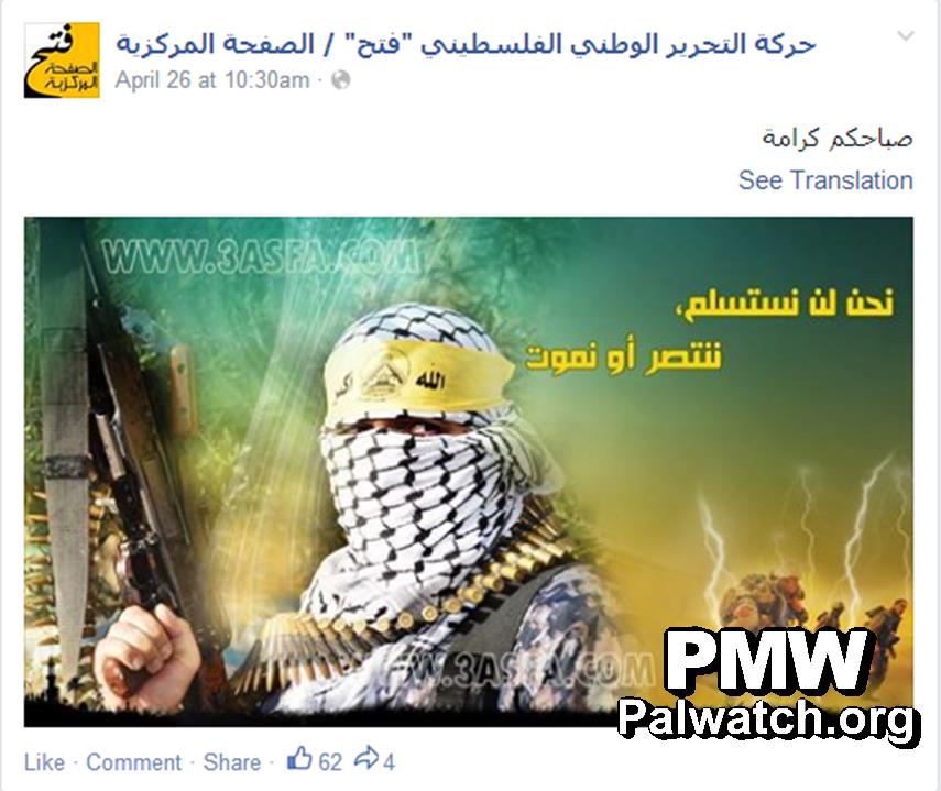 [Facebook, "Fatah - The Main Page" April 26, 2014]