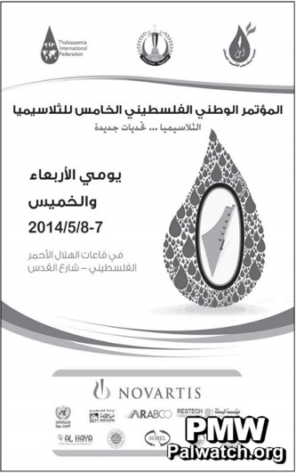 Advertisement for the fifth Palestinian National Conference on Thalassemia, printed in the official PA daily. The announcement includes a map that shows Israel and the Palestinian areas.