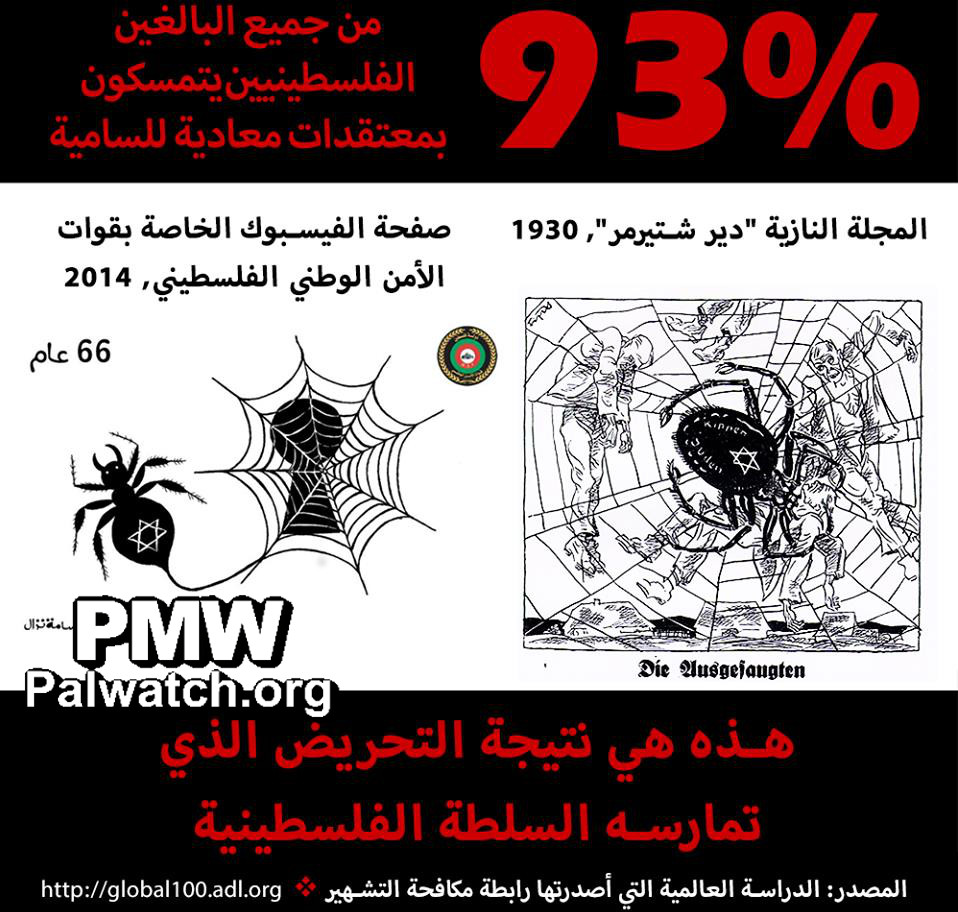 “Israeli Prime Minister Benjamin Netanyahu protested on his website (sic. – should be: Facebook page) the materials being published on the official Facebook page of the Palestinian National Security Forces on the issue of the right of return. The Israeli Prime Minister’s website used these materials to claim that 93% of our people are Antisemitic!