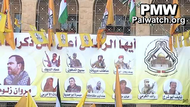 The following terrorists appeared on a poster at the event: Andalib Takatka, Ayyat Al-Akhras, Marwan Zalum, Raed Al-Karmi, Naif Abu Sharakh and Atef Abayat.