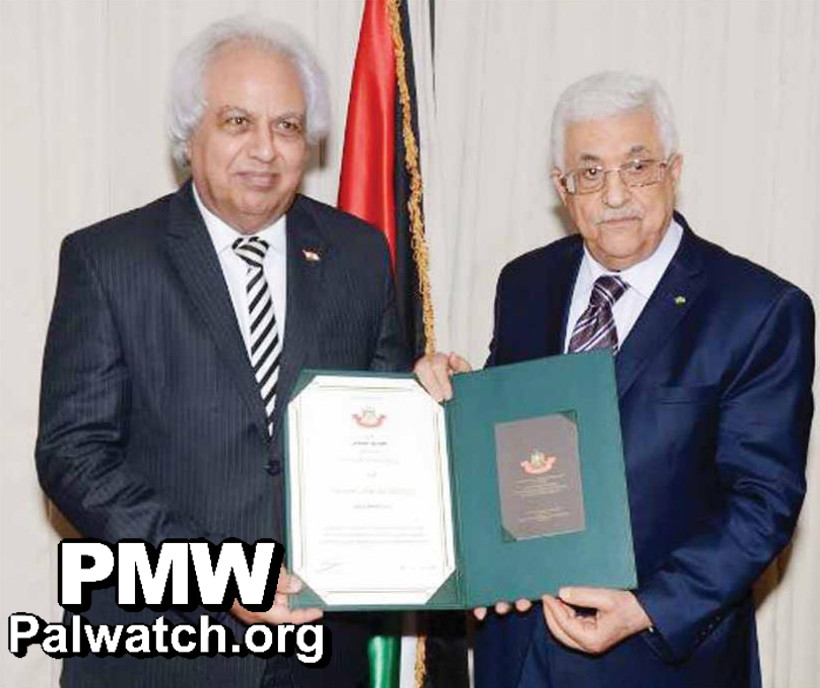 Photo: “[PA Chairman] Mahmoud Abbas awarding Samir Ghattas the order of merit.”
